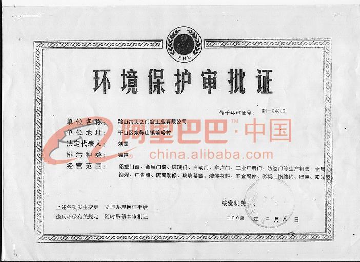 環(huán)境保護(hù)審批證